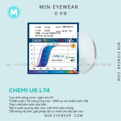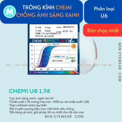 Tròng Kính Chemi Crystal U6 Coated Chống Ánh Sáng Xanh