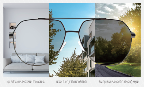 Phiên bản nâng cấp 3 tính năng chỉ trong 1 chiếc kính: Chống Tia UV – Kiểm Soát Ánh Sáng Xanh – Đổi Màu.